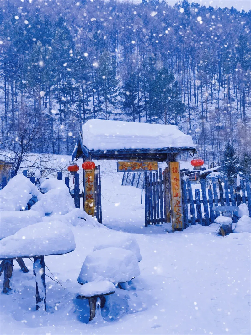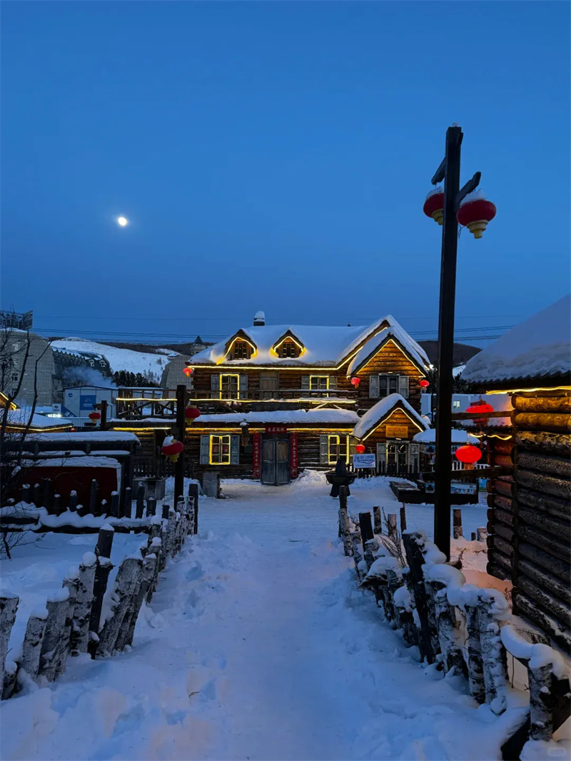 极致的冷,总被恰好的暖化解。雪村木刻楞房亮着暖灯,红灯笼映着屋顶雪蘑菇,推门便是融融暖意,屋外寒风呼啸,屋内笑语声声,反差格外动人。