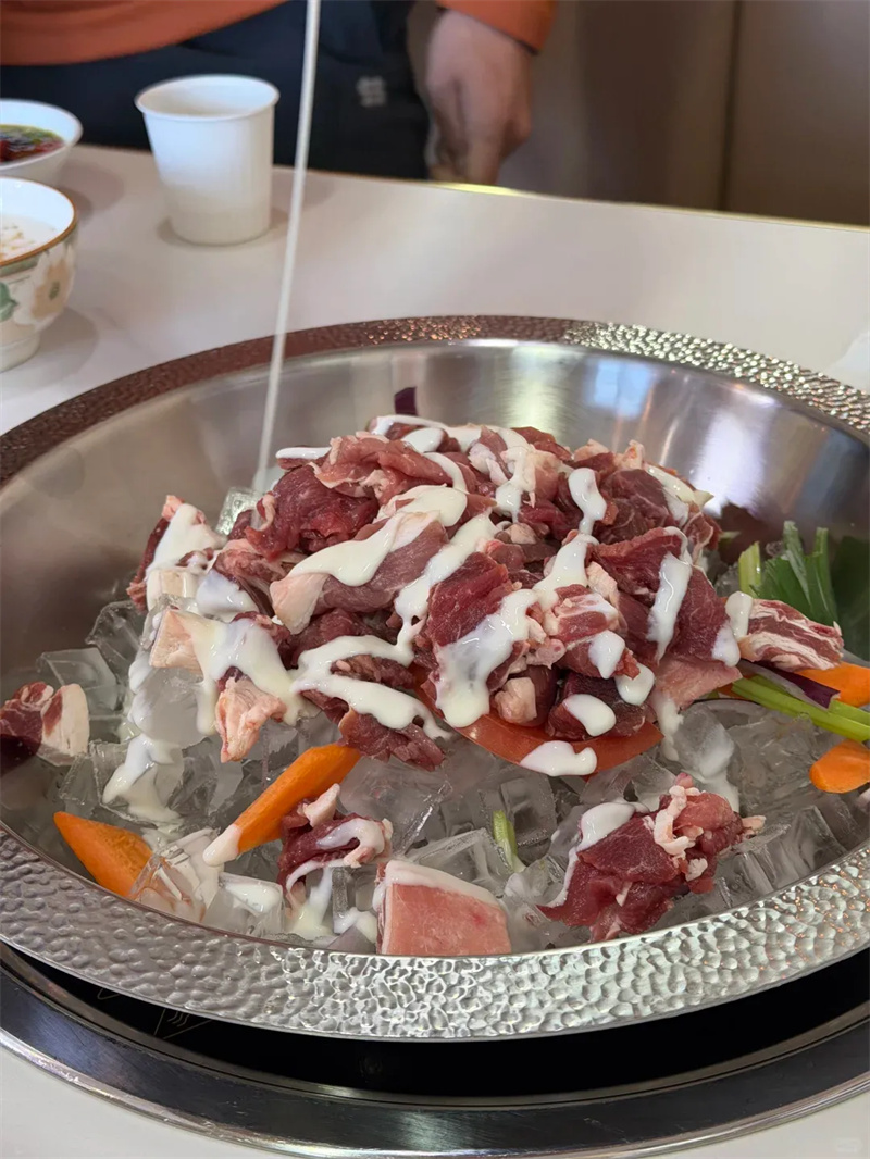 阿尔山冬夜,街头烟火暖透寒风。铜锅冰煮羊矿泉冰块煨煮,羊肉鲜润不柴;铁锅炖咕嘟沸腾香气四溢,老板一句地道东北“趁热吃”,暖意直抵心底。