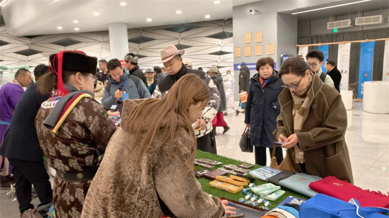 在晚会特设的文化展示区域,西乌旗展台前始终人流络绎不绝,两天的展览共计吸引群众超20000人次观光消费。观众们驻足欣赏、体验,深入了解产品背后的草原故事与文化传承。许多观众表示,这些产品不仅精美实用,更承载着深厚的情感与记忆,是了解西乌旗自然风光与人文风貌的生动窗口。