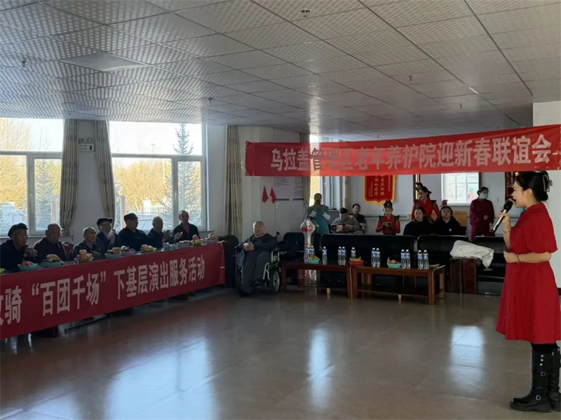 甲辰辞旧岁,丙午启新程。2026年2月10日,乌拉盖管理区乌兰牧骑开展了2场“百团千场”下基层演出服务活动。以“日间暖夕阳、夜间聚合力”的饱满热情,将马年新春的祝福与欢乐送到基层一线,让草原儿女在欢声笑语中喜迎佳节。