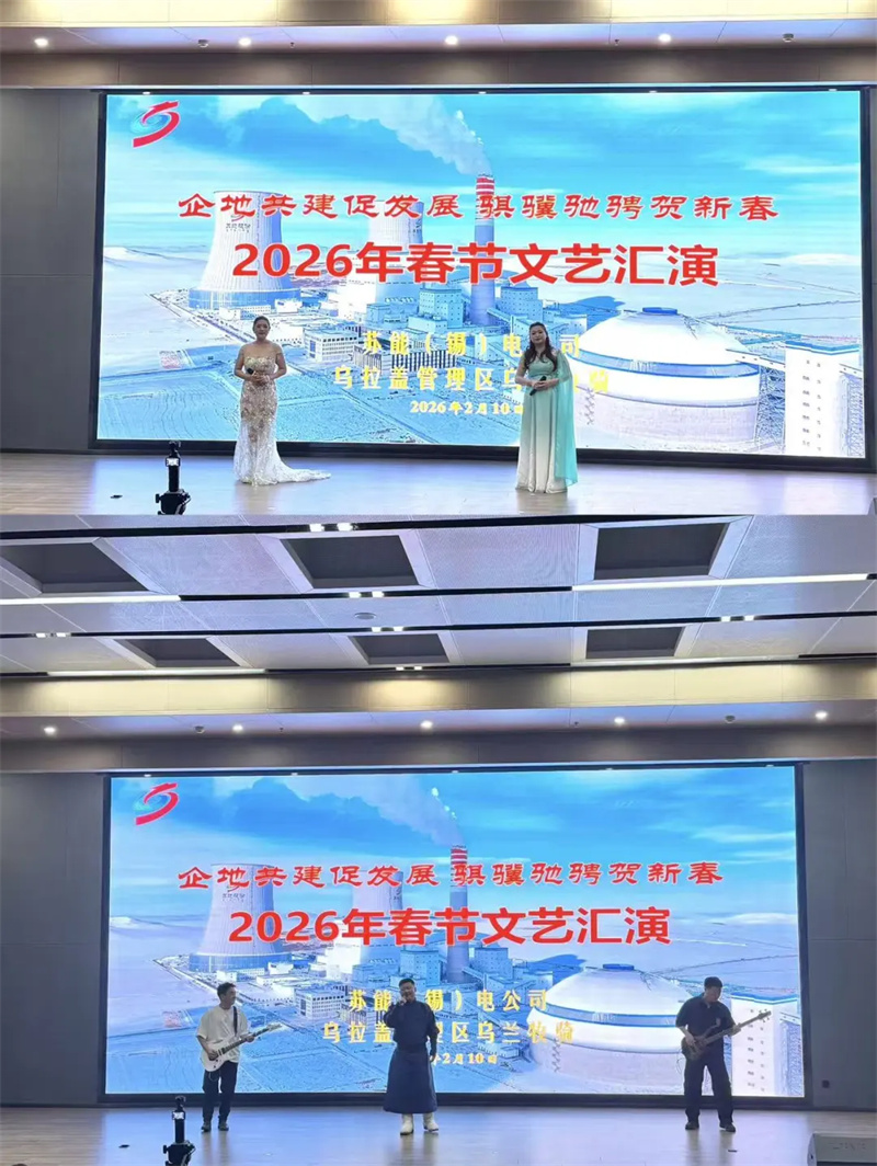 夜幕降临,苏能(锡)电公司内灯火璀璨、喜气洋洋。“企地共建促发展 骐骥驰骋贺新春”2026年春节慰问演出在此隆重举行。演出在气势磅礴的四重唱《冰雪乌拉盖》中拉开序幕,马头琴齐奏《万马奔腾》奏响奋进强音,歌曲《常回家看看》传递节日温情,小品《如何解读》引发阵阵欢笑,一系列精品节目将地域风情与企业精神深度融合。演员们以精湛的演技、饱满的热情,生动诠释了企地同心、携手共进的深厚情谊。