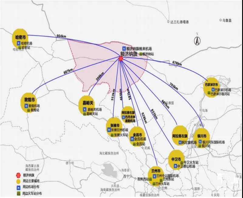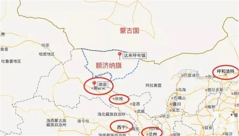 6阿拉善盟右旗—额济纳(480公里):阿拉善盟右旗—鼎新机场(250公里)—酒泉卫星发射中心(80公里)—额济纳