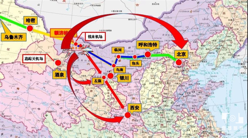 呼和浩特→萨拉齐→包头→乌拉特前旗→五原→临河→额济纳