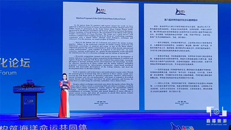 司仪宣读第六届世界妈祖文化论坛《湄洲倡议》