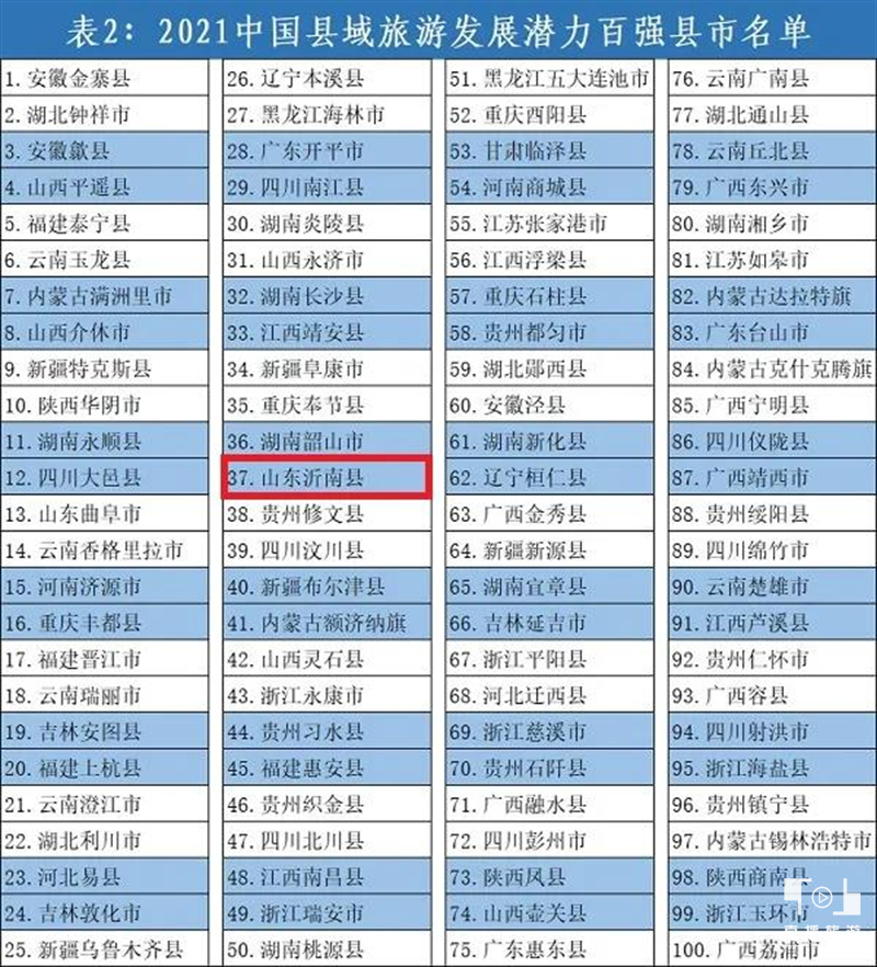 11月2日,竞争力智库、中国经济导报社和北京中新城市规划设计研究院等机构在北京联合发布《中国县域旅游竞争力报告2021》。《报告》对2020年我国县域旅游发展情况作了全面梳理,完成了第四届全国县域旅游竞争力评价工作,沂南县入选“2021中国县域旅游发展潜力百强县市”。