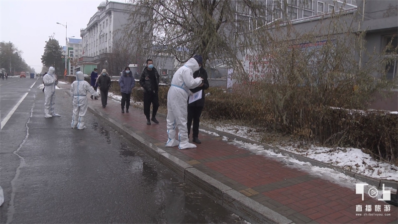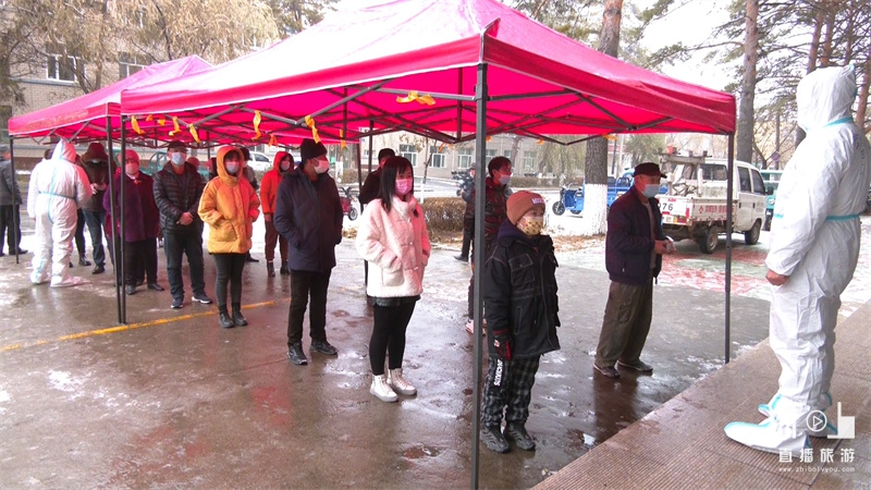 演练当天,飞舞的雪花为呼玛的街头披上了一层白纱。在呼玛镇部分核酸检测点,记者看到,检测人员两两一组、一字排开,排队等候区被拉上了围栏,由社区人员、警察、党员干部组成的志愿者队伍在现场有序登记,引导和维护秩序,保证了群众前来检测过程中顺畅清晰、不聚集。
