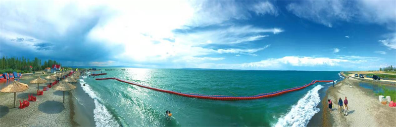 这里是天然海滨浴场,有摩托艇漂移、游船快艇、升空伞、热气球和海上嘉年华等娱乐项目,开通了新疆最美鸟岛登岛游船航线、芦荡迷宫鸟的后花园探秘探宝航线。逐步实现大、小海子游轮通航,填补新疆海洋旅游的空白,游客可参观“女娲补天”雕塑,解读“女娲补天”传说,“女娲补天福人间,欣欣向荣众生欢,天河之水仙神控,碧海蓝天升紫烟”,是休闲、观光、科普、研学、观鸟、品鱼、拍摄的好地方。