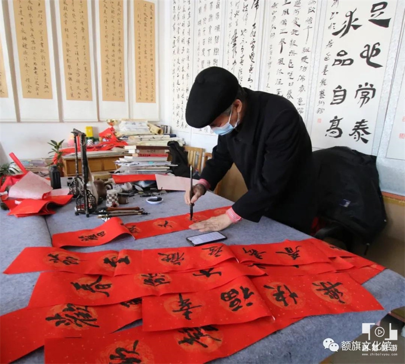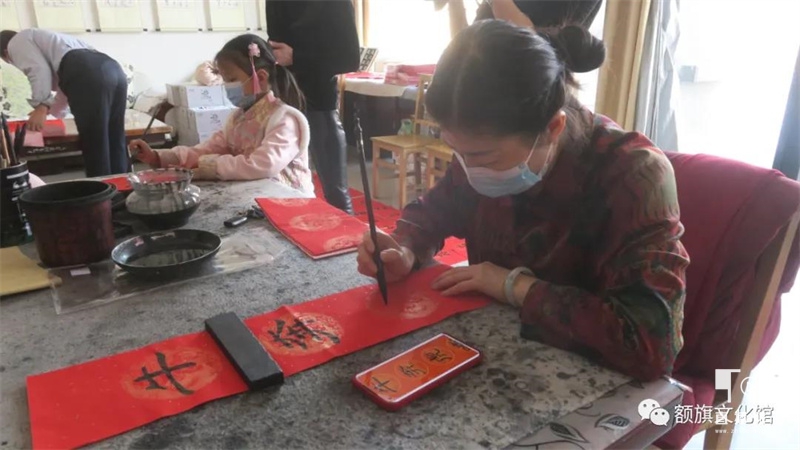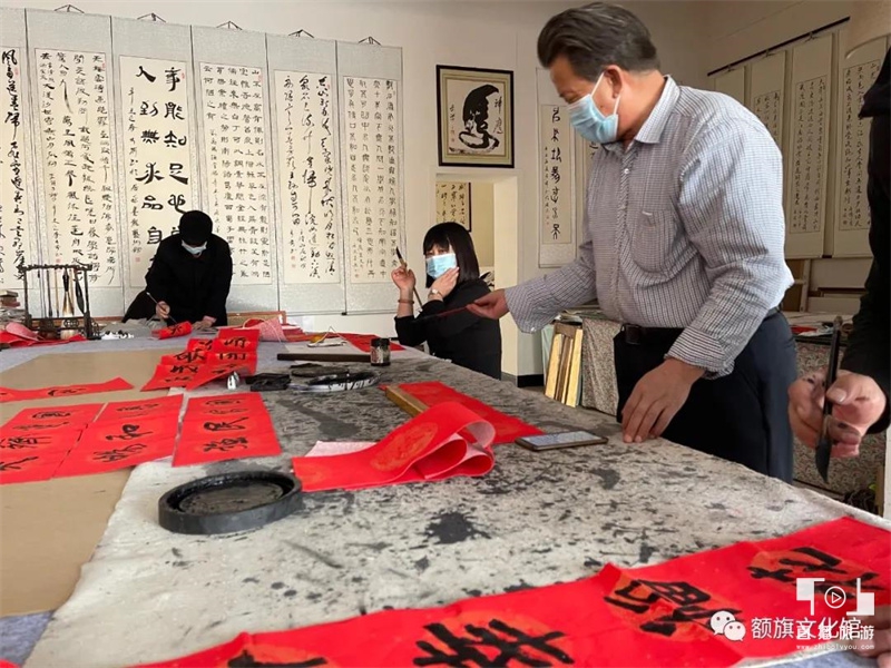 此次活动,由旗文化馆、旗书画协会组织旗广大书画爱好者精心挑选并书写虎年春节祝福春联,为旗广大人民群众送去新春的祝福。