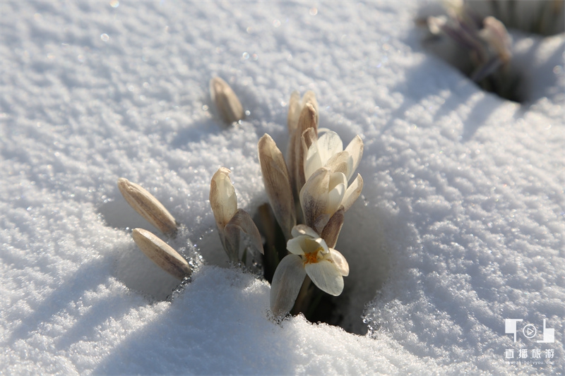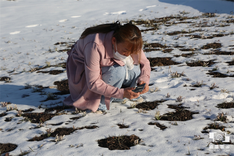 (通讯员:陈雅玲)3月8日,一名游客正在昭苏县乌孙山腹地拍摄盛开的野百合(俗称顶冰花)。