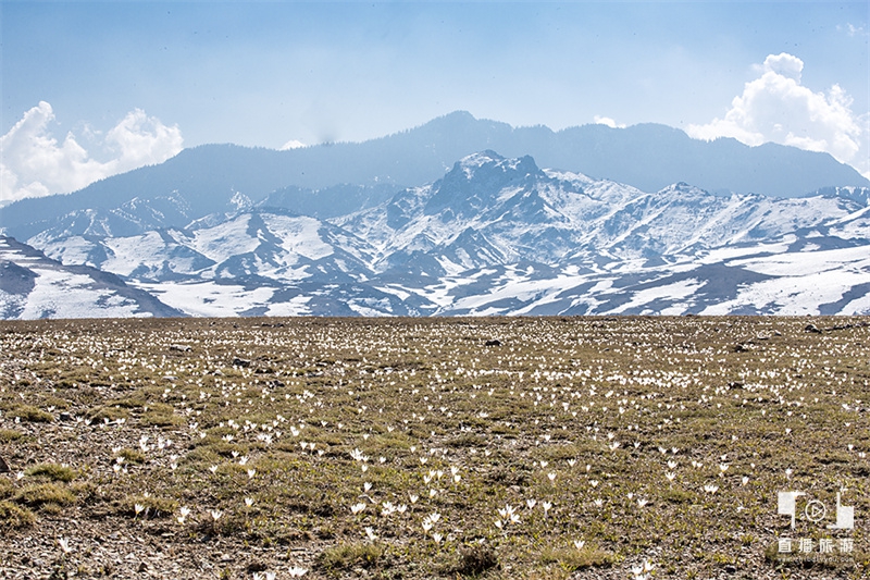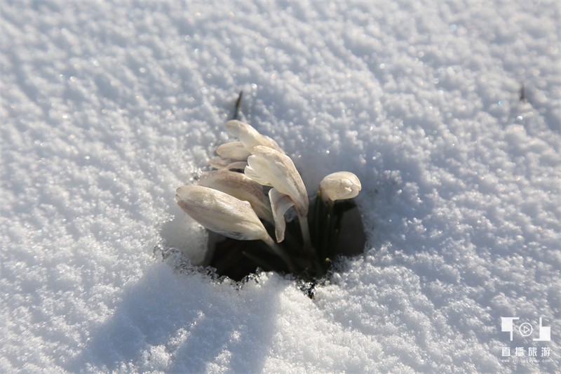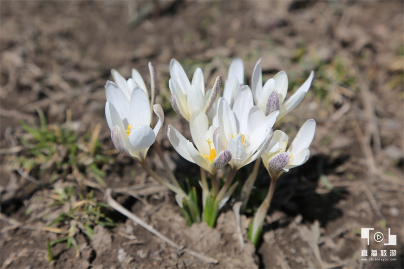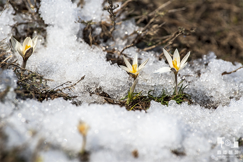 野百合又叫顶冰花,因为顶着冰雪开放而得名,是春季昭苏大草原上开放最早的野生花卉。在雪水的滋养下,最先破土而出,傲雪凌霜悄然绽放,这预示着草原上的春天的来临。3月上旬,伊犁河谷上的昭苏高原积雪逐渐开始消融,成片的顶冰花在涓涓雪水的滋养下悄然绽放,远远望去像无数盏纤巧的莲花灯,点亮了整个草原。