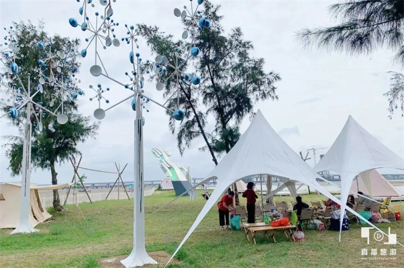 游客在金海湾红树林景区灯塔营地体验露营。图丨北海旅游集团