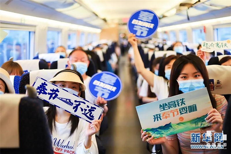 郑渝高铁开通首日,游客乘坐首发列车前往奉节。新华网发
