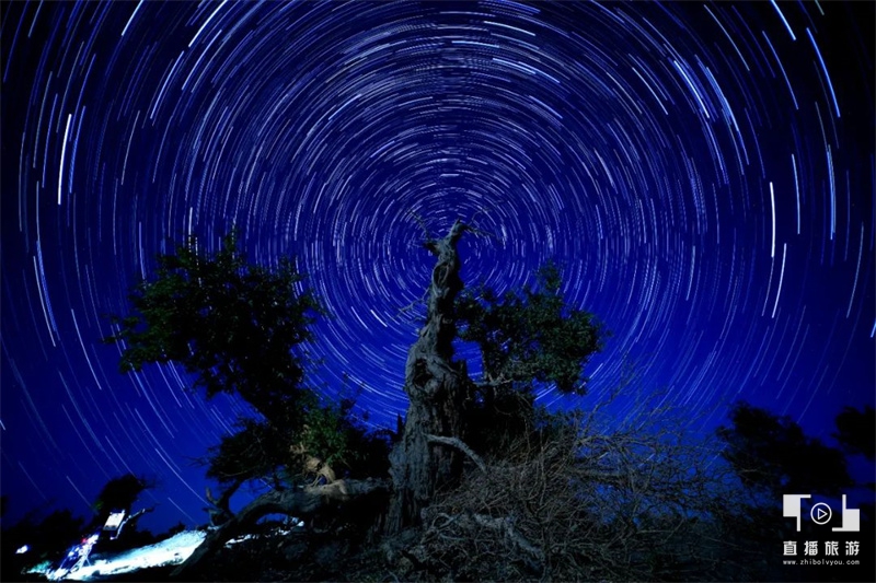 星空下的胡杨,天地相连、星空璀璨,银河仿佛从天空中倾倒而下,散落林中,在中国最美星空拍摄基地,仰望浩瀚银河,置身于沙漠黑夜,仿佛穿越了千年。