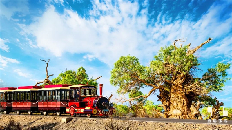 乘坐托马斯小火车,在神秘的伊吾胡杨林之中缓缓穿梭,寻觅岁月遗留在人间的印记,耳畔拂过的微风,一瞬间将你带回到千万年前······