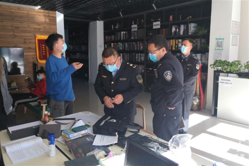 开展检查,进一步筑牢安全防线。9月22-26日,文化市场综合行政执法局按照各场所实际,分别设文化市场检查组和新业态市场检查组开展检查。文化市场检查组由文化市场综合行政执法局局长鄂永利带队,主要对网吧、影院、游艺场所等文化市场经营场所开展检查。新业态检查组由文化市场综合行政执法局副局长任海兵带队,联合市消防救援大队、市场监督管理局、公安局、新闻出版版权局,主要对音乐烧烤、剧本杀等新业态市场经营场所开展检查。检查人员重点对各经营场所是否严格落实扫场所码、戴口罩、测体温、检查健康码、一米线、50%限量接待、通风消杀、防控物资是否齐备等疫情防控举措进行了检查,同时也对各经营场所的疏散通道、安全出口、疏散指示标志、应急照明灯、灭火器、室内消火栓等必要的消防设施和器材进行了详细检查。两个检查组共检查经营场所16家,其中新业态市场经营场所8家、文化市场经营场所8家。共发现安全隐患问题10个,疫情防控问题4个。各相关部门和文化市场执法人员根据各自职责,分别对存在问题的经营场所当场进行了警告,并要求现场整改,现场整改不了的限期整改。