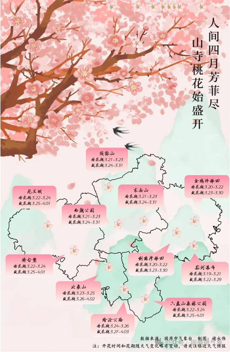 预计3月下旬到4月上旬,固原市平均气温与常年同期相比偏高0.5℃以内。综合预判固原市今年杏花开花时间较去年偏早6天左右。各地杏花初放日在3月30日至4月7日,盛花期在4月3日至4月15日。